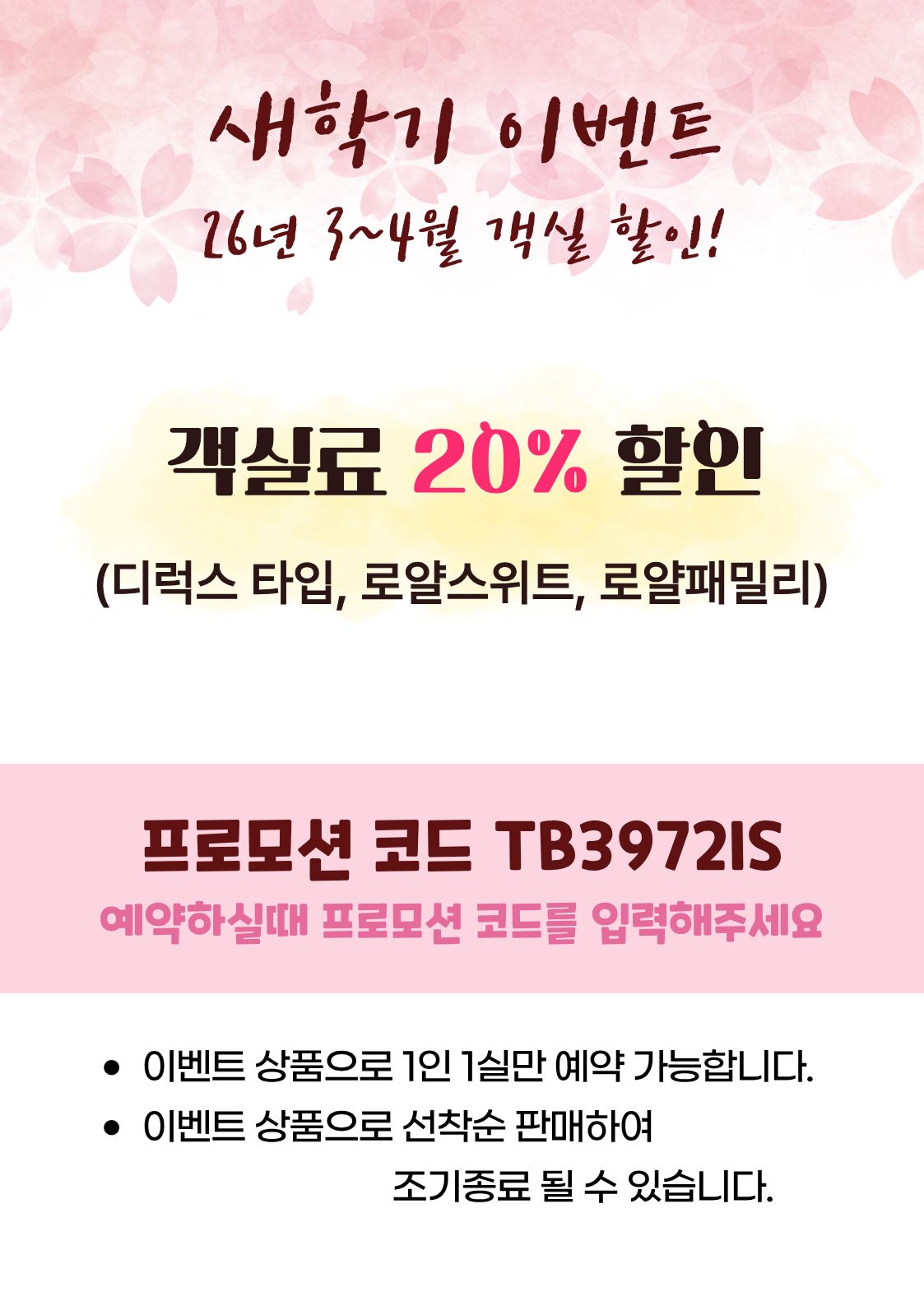 다소 저렴하게 가족들끼리 Healing 할 수 있는 룸입니다.